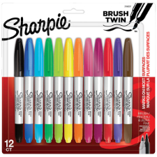 SHARPIE TWIN BRUSH PERMANENT MARKERS ASSORTED PACK 12